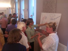 Karsten Gram fra Landdistrikternes Hus sammenfattede et resumé fra borgermødet. Der blev nedsat fire arbejdsgrupper, som vil fortsætte med de projekter og borgerønsker, der blev fremlagt.